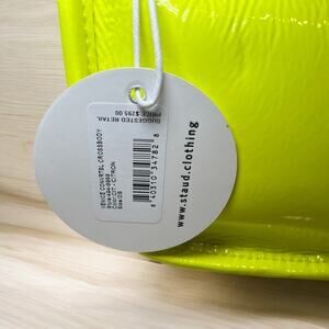 This New With Tags STAUD Venice Convertible Crossbody Bag is just adorable! Featuring a crescent shaped, crinkled patent leather bag in the colorway Citron, this bag is both super stylish and functional with a removable strap for hand, shoulder or crossbody wear. If you love a bright pop of color, this cute little bag is perfect for you!