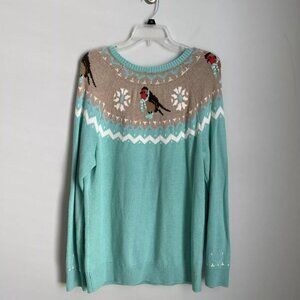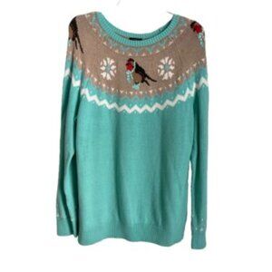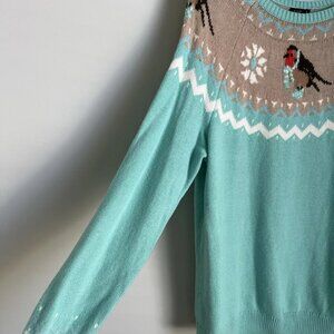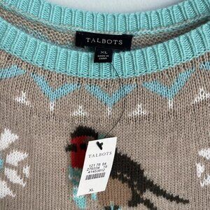 New With Tags Talbots Teal Lambswool Knit Fair Isle Snow Bird Sweater