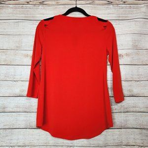 New With Tags Thalia Sodi Women's Size XS Eternal Red Keyhole Blouse 3/4 Sleeves