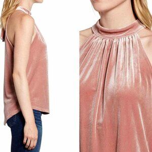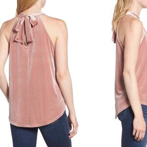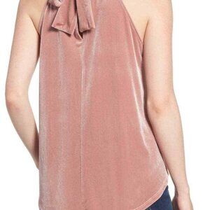 New With Tags XS Nordstrom Gibson Velvet Tie Back Bow Pink Mauve Halter Top