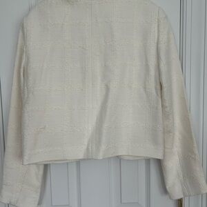 New Winter white blazer with gold button details. Perfect for a polished look, dress up or down. Size 10.