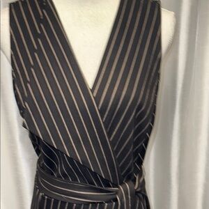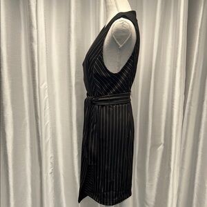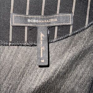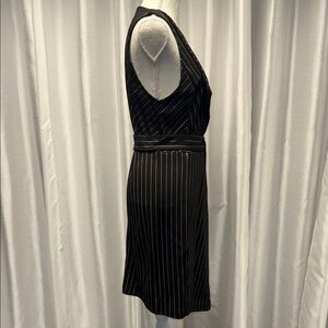 Brand new. Never worn BCBG dress. On trend menswear style Elegant black pinstripe wrap dress with a flattering fit. Perfect for any occasion.Easy Care Size M.