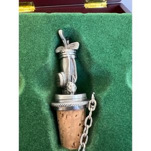 Elevate your golfing experience with our exquisite Pewter 3-Bottle Topper Set, nestled in a luxurious Redwood Stained Presentation Box. Designed for enthusiasts of the sport, this set captures the essence of the '19th Hole,' where camaraderie and celebration abound. Each topper showcases intricate pewter craftsmanship, depicting scenes of golfers in action - from swinging to chipping - adding a touch of elegance to your wine bottles. Whether for personal use or gifting, this set is a perfect addition to any golf lover's collection, symbolizing the joy and relaxation of a day on the course.