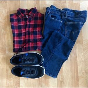 Good fellow and Co Men’s Red and Black Plaid Long sleeve, Button down Shirt