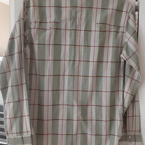 Artful Dodger Artisans" Series Western Style Button Down Shirt. Two Tone Green Plaid With Red Stripes. 100% Cotton. Pearl Snap Buttons. New Without Tags.