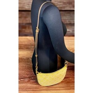 This New Without Tags Tory Burch T Monogram Mini Jacquard Hobo Crossbody Bag in Goldfinch is simply adorable! This classic pattern was Inspired by traditional Pennsylvania Dutch quilting and celebrates Tory Burch’s iconic logo. Both functional and stylish, this bag has an adjustable/removable tan strap for shoulder or crossbody use. If you love Tory Burch, then this is a must have for your collection!
