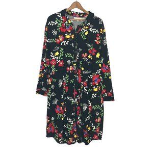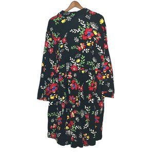 New Woman Within 1X 22/24 Black Floral Cotton Modal Knit Long Sleeve Dress Plus