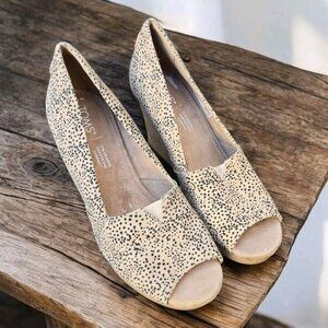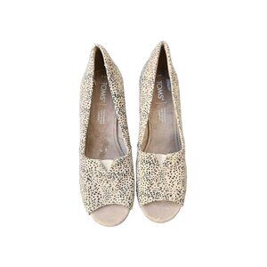 New Woman's Black & Brown Spotted TOMS Wedge Slip On Pumps Size 7.5