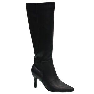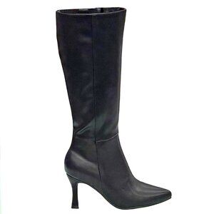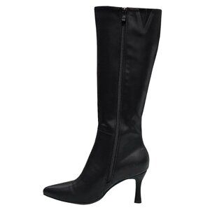 New Women Black Pointed Toe Stiletto Kitten Heel Tall Knee High Boots