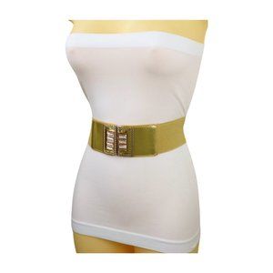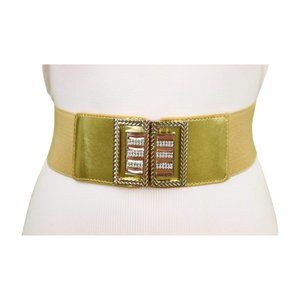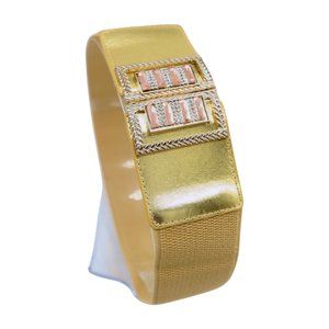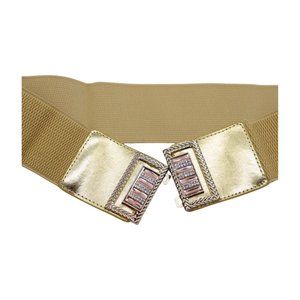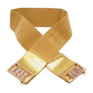 Women's Gold Elastic Waistband Fashion Belt with Rhinestones and Beads