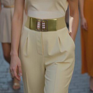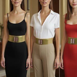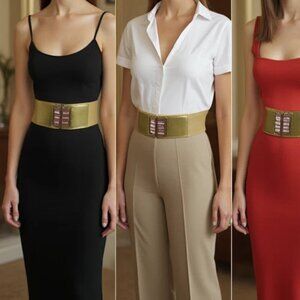 Elevate your look with our Women's Gold Elastic Waistband Fashion Belt. This stunning belt is designed to add a touch of glamour and sophistication to your outfit, whether you're heading to a party, work, or a special event.