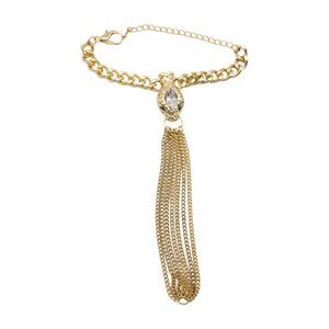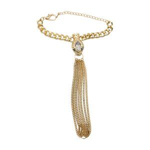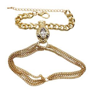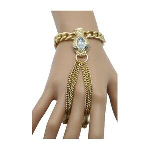 New Women Gold Fashion Bracelet Metal Hand Chain Connected Ring Bling Snake Head