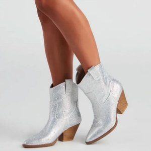 New Women Silver Rhinestone Sparkly Cowboy Western Boots