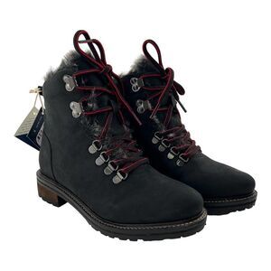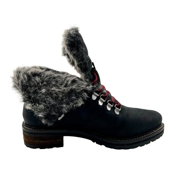 New Women Joules Ashwood Black Leather Faux Fur Warm Lace-Up Hiking Ankle Boots