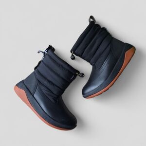 New Women Joules Ashwood Black Leather Faux Fur Warm Lace-Up Hiking Ankle Snow Boots