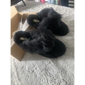 New Women's 100% UGG Scuff Sis Fluffy Fuzzy Slipper Sandals Shoes Black Size 10
