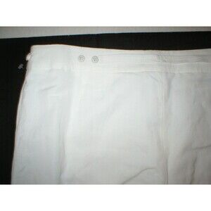 Armani Collezioni Linen and viscose pants White but not glaring white size 48 IT US 32 or 34 as the waist measures Inseam is 37" raw; have not been cuffed or hemmed Great for tall women or have them cuffed Great for any woman from her teens through adulthood! These look nice and are comfortable! 54% Linen 46% Viscose Lined These feel really nice! Extra buttons included Made in Italy