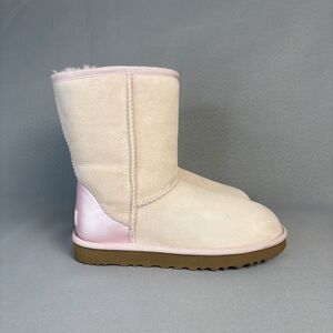 New Womens 7 UGG Boots Classic Short Metallic Seashell Light Pink Suede Coquette