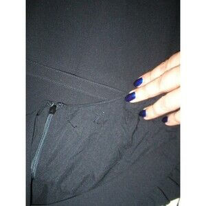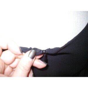 Beautiful dress! Crepe silk blend 2 design features on each side make you look slimmer. Completely lined You may switch out the belt but this belt is very cool It snaps in place on one end so it is not flopping around and only 1 place for the buckle to fit. Ruffle at the top of the shoulders This is a very cool & unique dress! I LOVE the line accents in the front and back. Wear to work, school, or out to dinner or anywhere else you wish Size is 8 I have 2 of these, one does not have a label but still has the size where the material tag is. This is a very unique dress and I simply LOVE it! Wish it were my size!