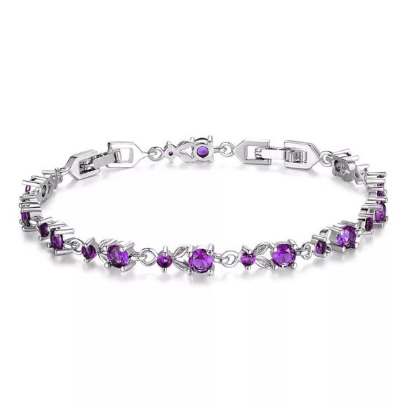 Luxurious Design: Crafted to perfection, this 7-inch bracelet features a continuous line of meticulously set amethyst cubic zirconias. The sleek and elegant design ensures it complements any outfit, adding a touch of glamour and sophistication.