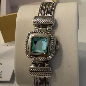 Brand New Never Worn with Box and extra link. Charter Club Silver-Tone Blue Stone Mesh Bracelet Watch