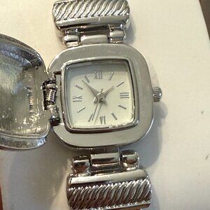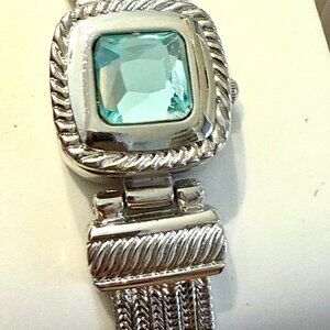 New Women's Aqua Stone Flip Cover Silver-Tone Bracelet Watch 25mm - Never Worn