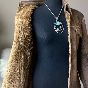 New Womens Aziza Brown Faux Fur Suede Western Shearling Coat Jacket L Large