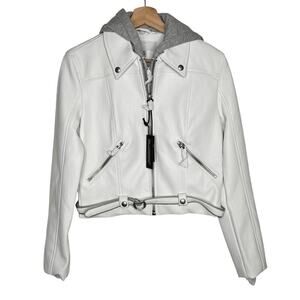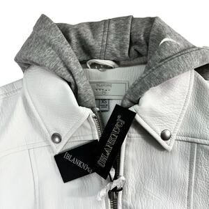 New Women’s BLANKNYC Textured Vegan Leather Moto Jacket with Hood Size XS