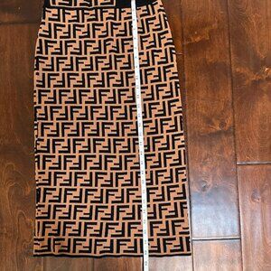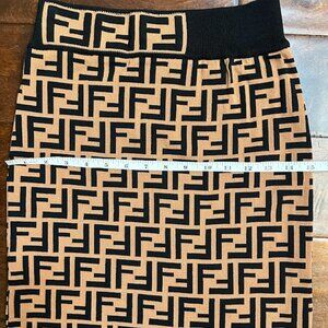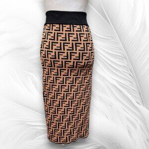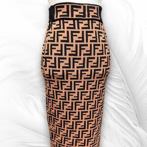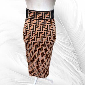 New Women’s Beige And Black Knit Bodycon Midi Skirt Geometric Pattern Size: S