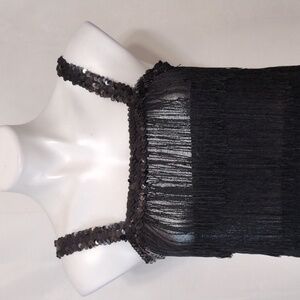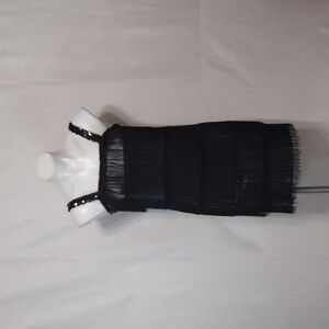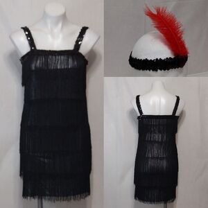 New Women's Black Flapper Dress Set Small Tiered Fringe Tassels Mini Party Dress