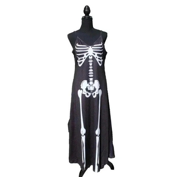 Get ready for Halloween with this stunning black and white skeleton dress! Made from high-quality polyester material, this dress features an elastic and stretchy design for maximum comfort. The dress is perfect for any Halloween occasion and is available in a medium size.This dress is perfect for anyone who wants to make a statement at their Halloween party. The unique skeleton design is sure to turn heads and make you stand out from the crowd. Whether you're dressing up for a costume party or just want to add a touch of spookiness to your Halloween decor, this dress is the perfect choice.