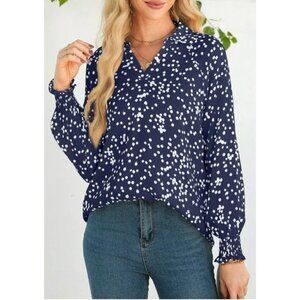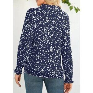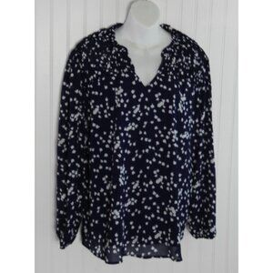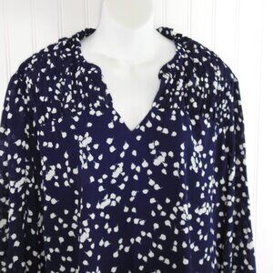 New Women's Blue While Polka Dot Ls Poet Relaxed Fit Lined Gathered Cuffs Sz XL