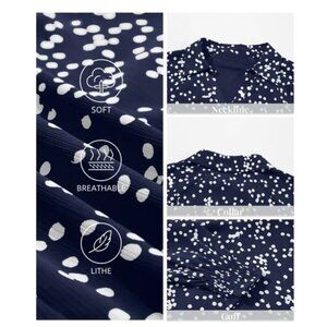 The product is a stylish women's blouse in blue with white polka dots, featuring a relaxed fit and a V-neckline. Made of polyester, it has long sleeves and gathered cuffs, making it perfect for casual occasions during the summer, fall, and spring seasons. The blouse is lined for added comfort and is machine washable for easy care. The brand Dokotoo offers this trendy top in size XL, catering to those looking for a fashionable yet comfortable addition to their wardrobe.