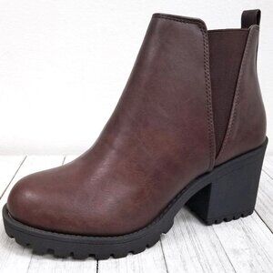 New Womens Brown Chelsea Combat Ankle Boots Booties