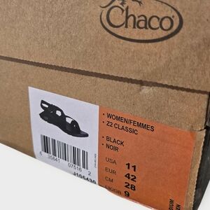 New! Women's Chaco Z2 Classic Black Toe Loop Adjustable Sport Sandals. Size 11.