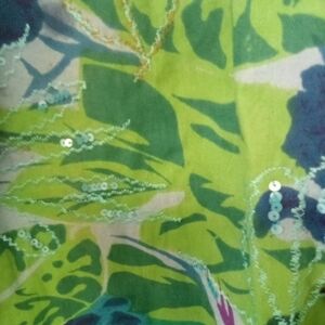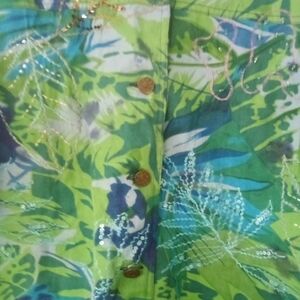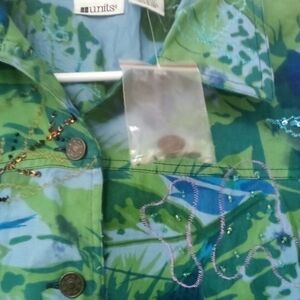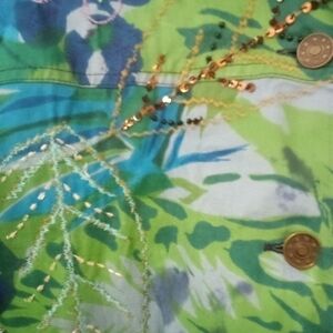 New Women's Colorful Floral Blue & Green Sequined Embroidered Jacket Size Large