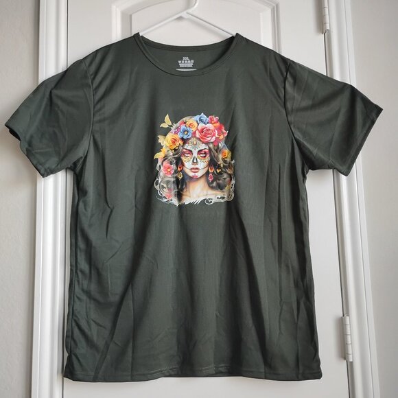 New! Women's "Day of the Dead" T-Shirt Very Dark Green Size XXL