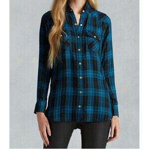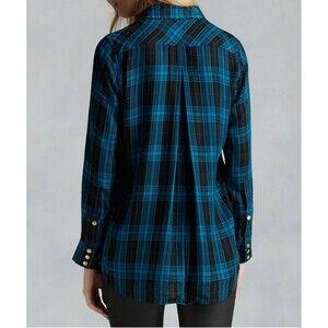 New Womens Designer True Religion M Plaid Top $169 Black Aqua Blue NW Tunic Zip