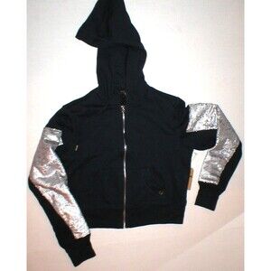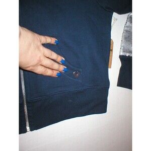 New Womens Designer True Religion Sequin Hoodie Jacket Crop Navy Blue Silver S