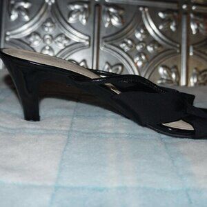 New Women's EAST 5TH HEATHER BLACK Size 8M Slip On Open Toe 2.5" Stiletto Heels