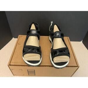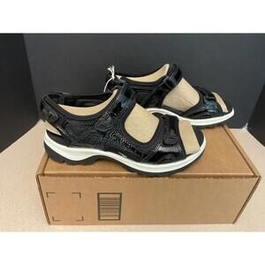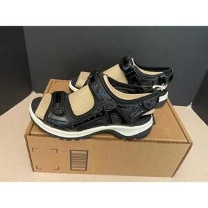 New! Womens ECCO Yucatan Black Patent Sport Sandals. Size 38-US 7-7.5. Awesome!