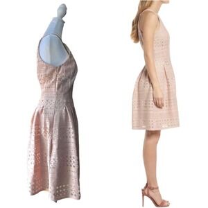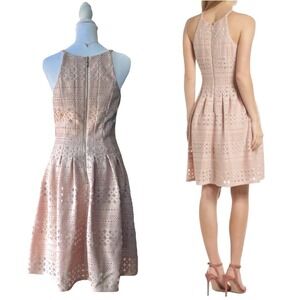 New Women’s Eliza J Laser Cut Fit & Flare Halter Dress In Blush Size 4