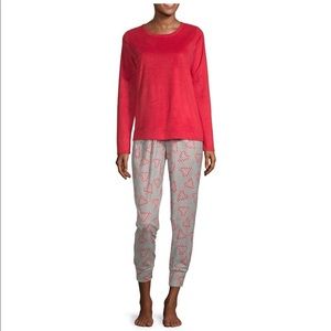 New Womens Fleece 2 Pc Pajama Set Red Candycanes