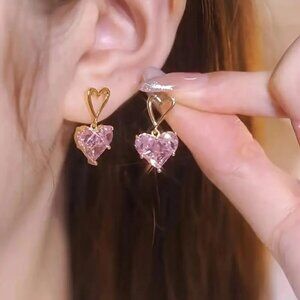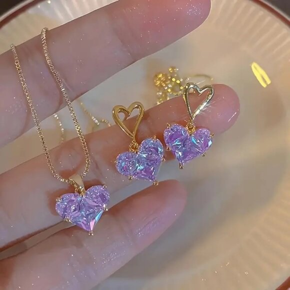 ZIRCON NECKLACE EARRINGS:The heart necklace earrings are made of gold plated. The cubic zirconia adds a sparkle to the earrings and necklace.