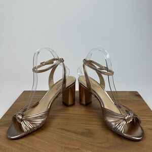 New Womens Jewel Badgley Mischka Christen Rose Gold Peep Toe Knot Heels Size 7.5
