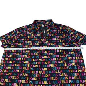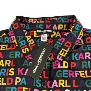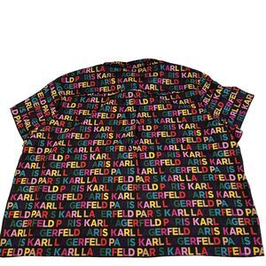 New Women’s Karl Lagerfeld AOP Spellout Short Sleeve Blouse Top Plus Size 2X NWT