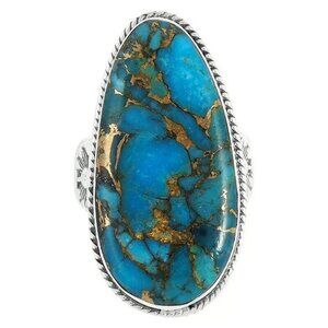 New Womens Large Turquoise 925 Sterling Silver Ring