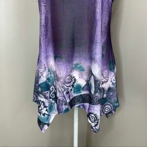 New Womens Medium Tank Top Purple V Neck handkerchief Hem