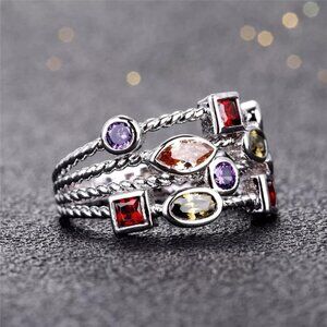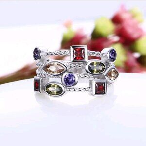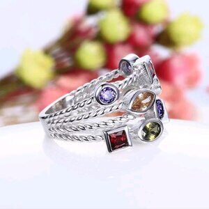 New Womens Multi Colored Cubic Zirconia Silver Ring