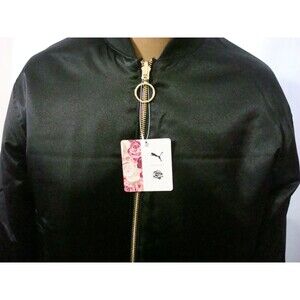 New Womens NWT $200 Satin Puma Reversible Rose Bomber Jacket S Black Beige Small
